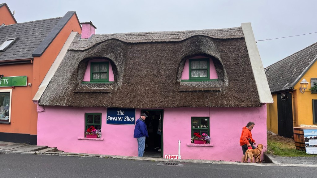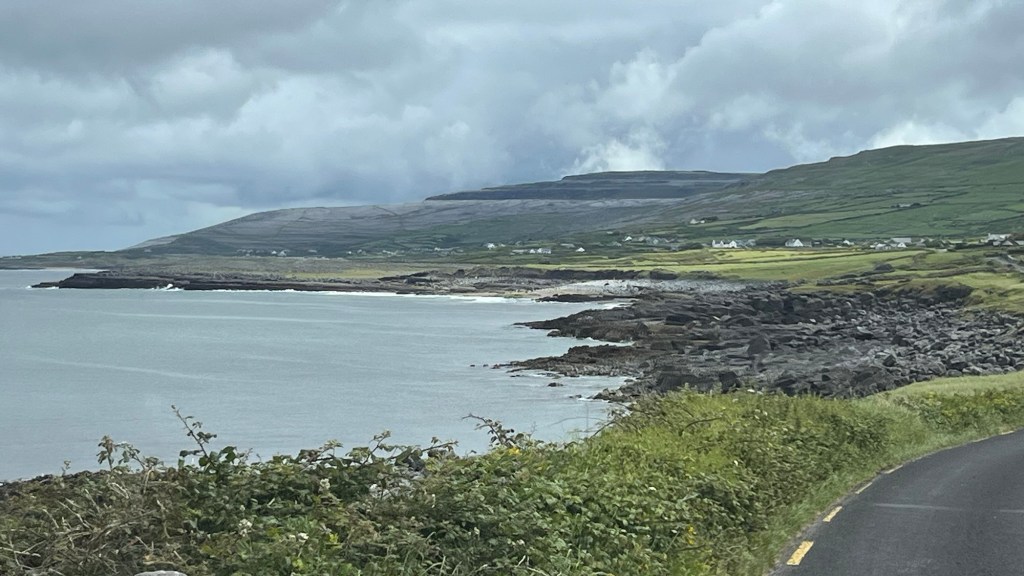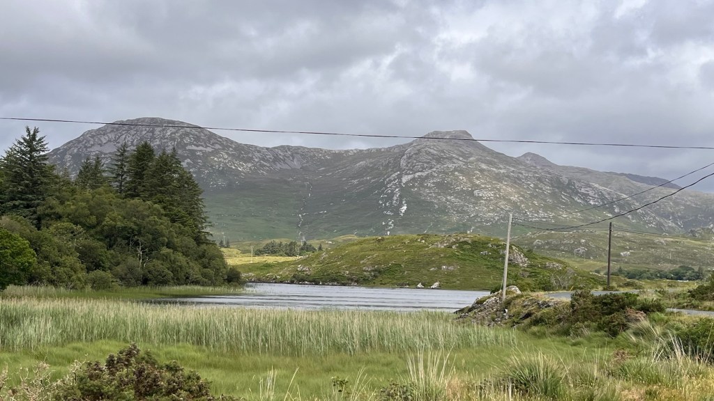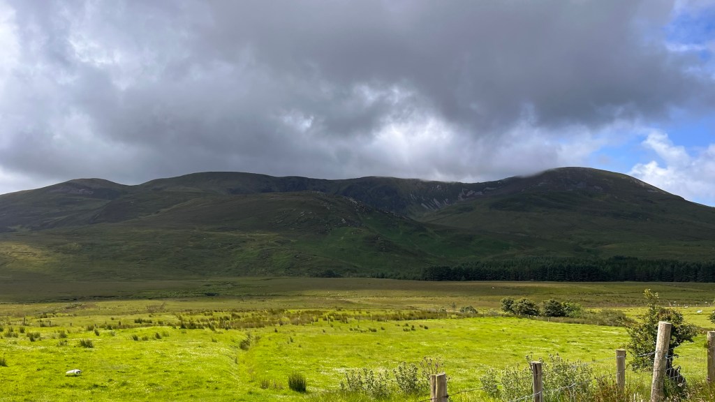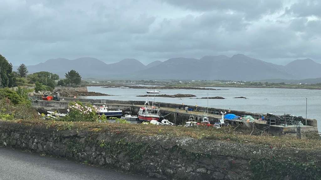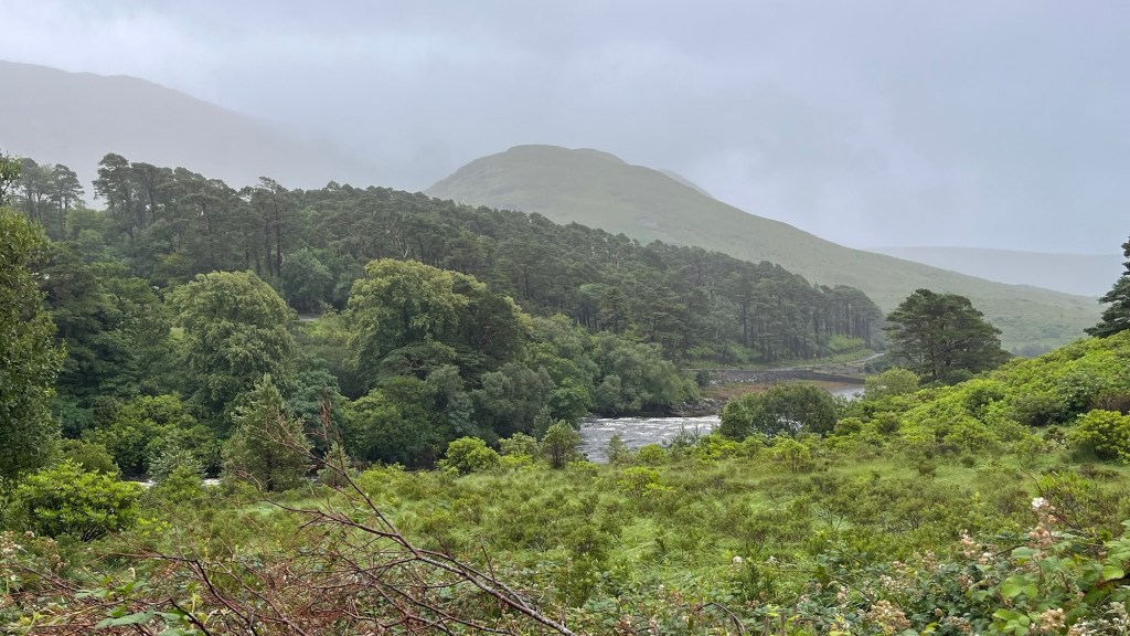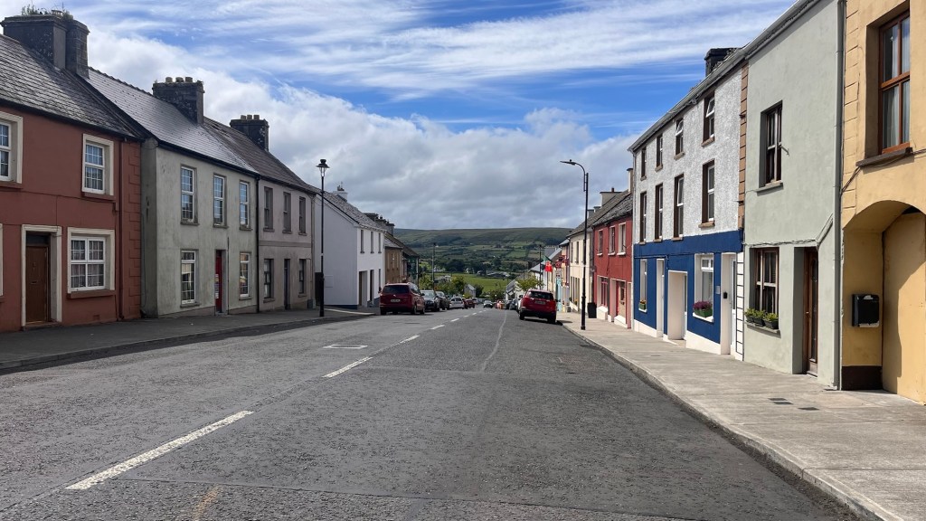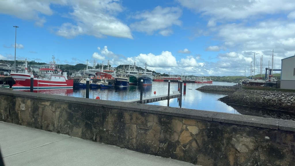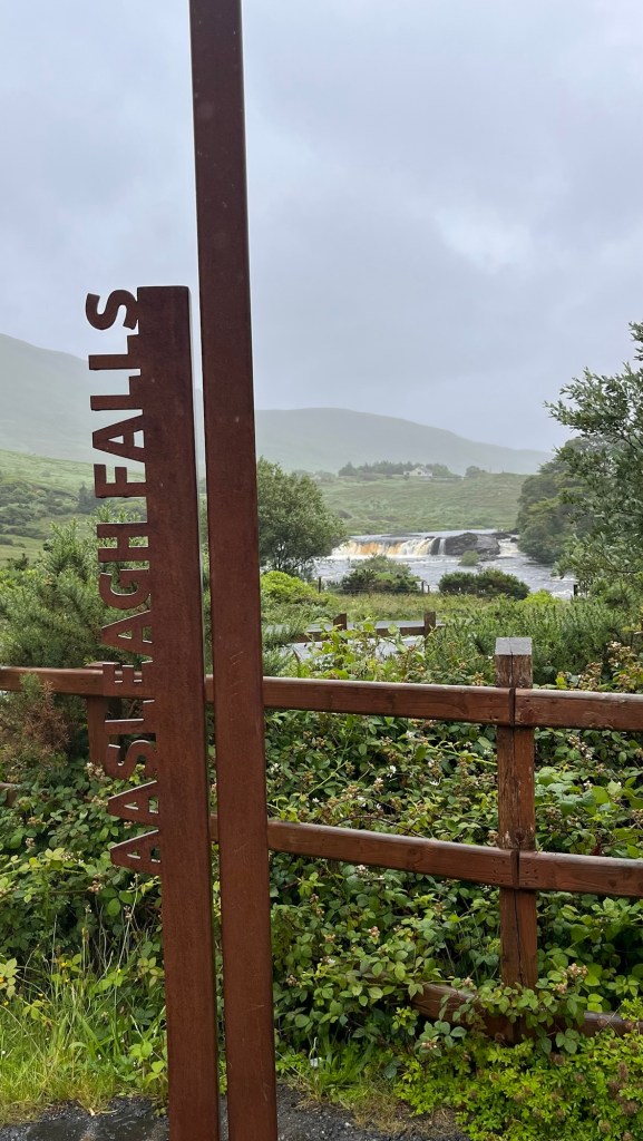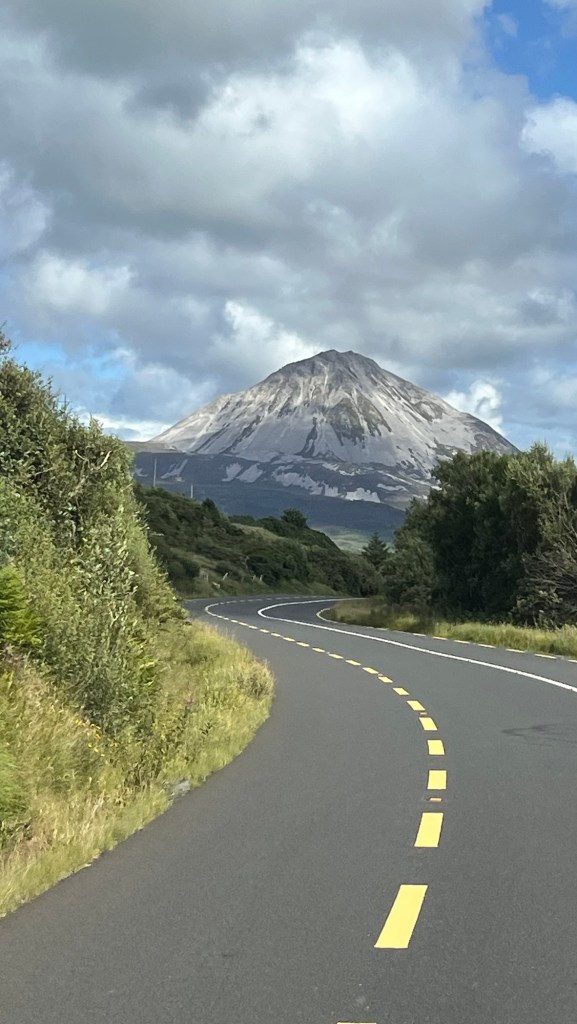We headed down the lovely east coast of the headland through Rathmullan and Ramelton, two small delightful towns and onto Letterkenny, where the heavens seriously opened up – so hard that we were on double wash wipe with the windscreen wipers. It had eased off as we skirted the edge of Letterkenny – full of roundabouts, traffic lights, commuter traffic and queues. It’s always a bit of a shock to the system touching a large town or city.