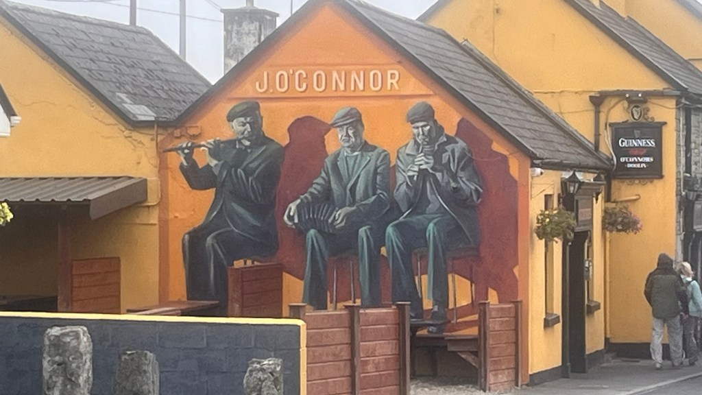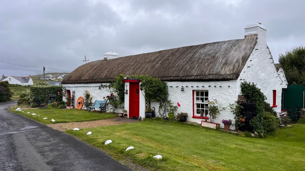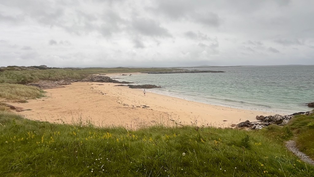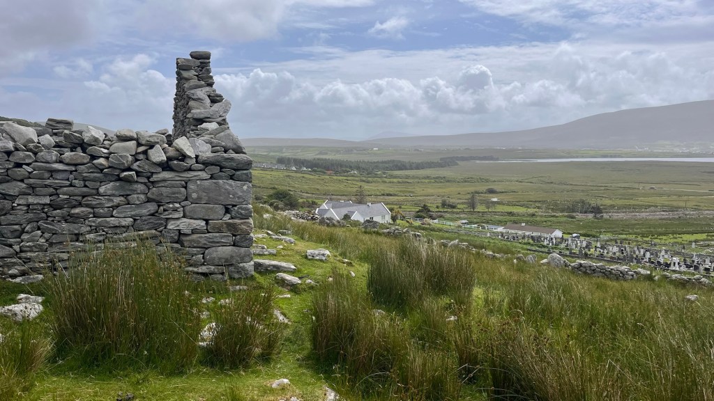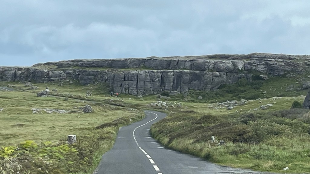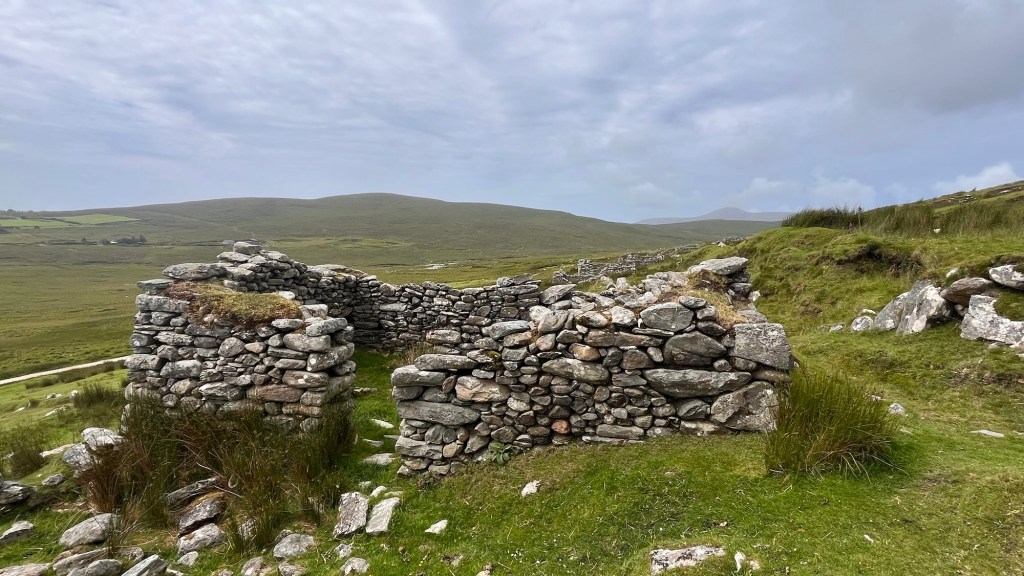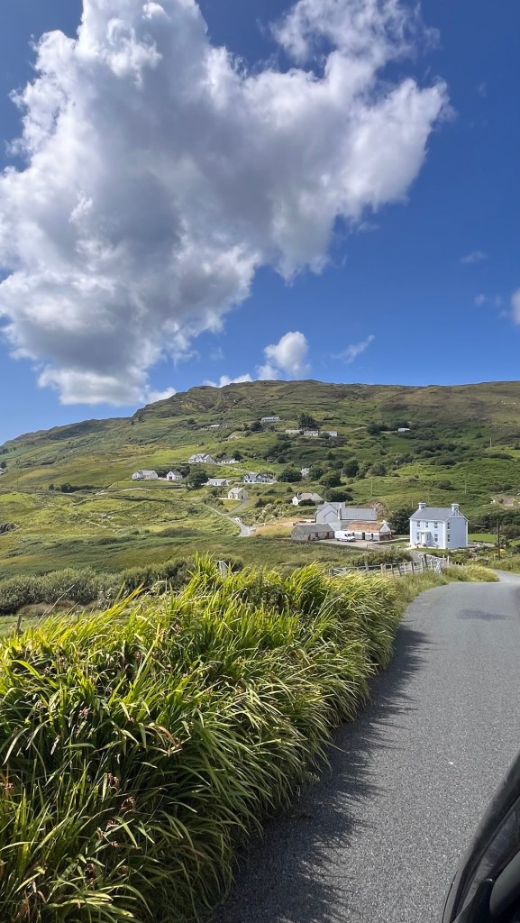 During our earlier wander we had also spotted “Eire 71” on a prominent piece of grassland, created from large white washed stones. We had seen two or three on our travels and we had learnt that they were a WWII navigational tool, mainly to let aircraft know that they were approaching neutral Eire and whereabouts they were. Apparently there’s not many about, but this one look in good condition.