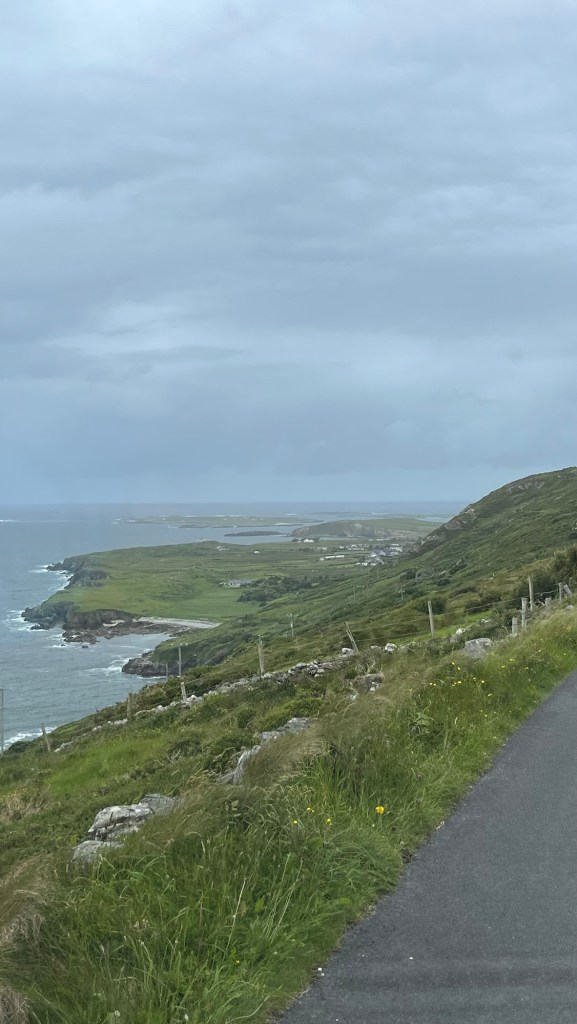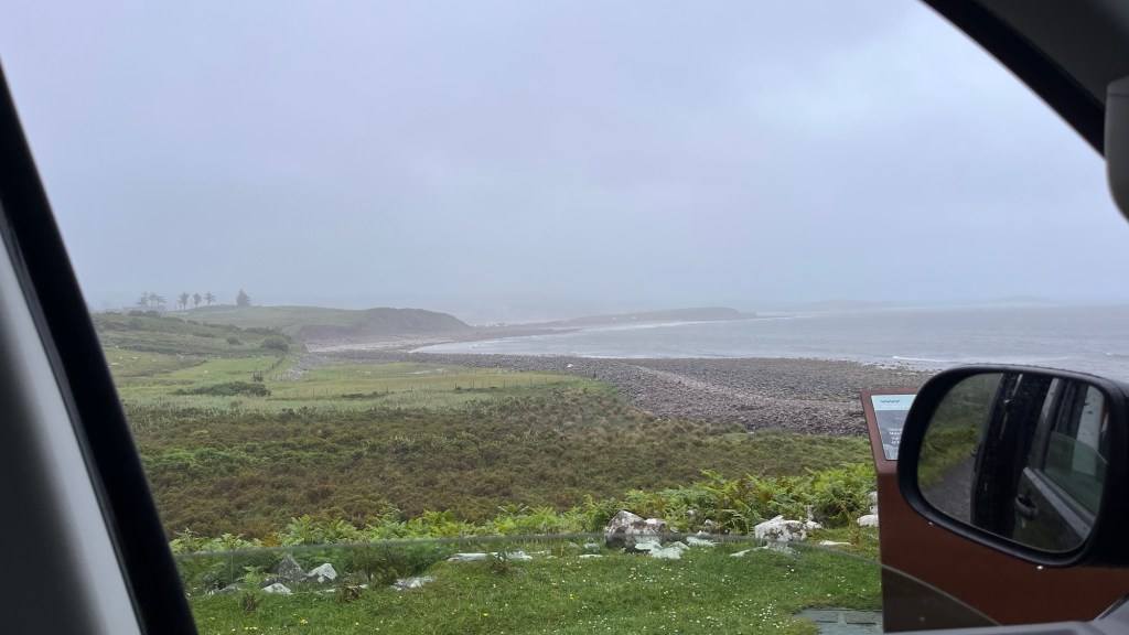 So we toured around Fanad, heading to the lighthouse, still being flabbergasted by the landscape. Donegal is amazing. We arrived at the lighthouse, just as the heavens opened so dashed into the little cafe and visitor centre and had lunch, which was lovely from a little eatery. We looked at the little gift shop as it was still pelting down and when there was a slight window of drizzle, we scampered back to the van.