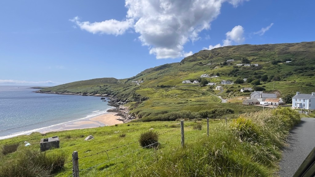 We hatched a plan to end up at Malin Head tonight as it’s the most northerly point of Ireland and in between, investigate the Rosguill and Fanad headlands. We left Creeslough and meandered to Carrickart, along some very pretty countryside.
