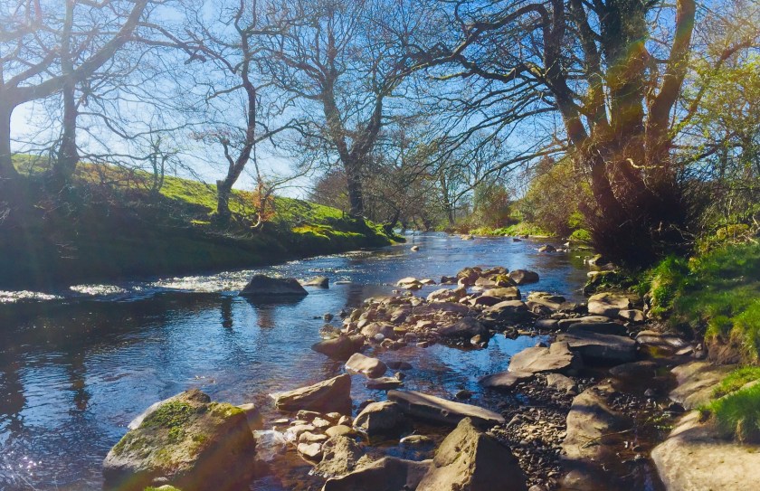 It’s a really pretty river that gurgles across rocks and boulders, with some deep pools of water so The Dog can either have a paddle or swim after a stick. She thoroughly enjoyed herself for over an hour jumping into the water.