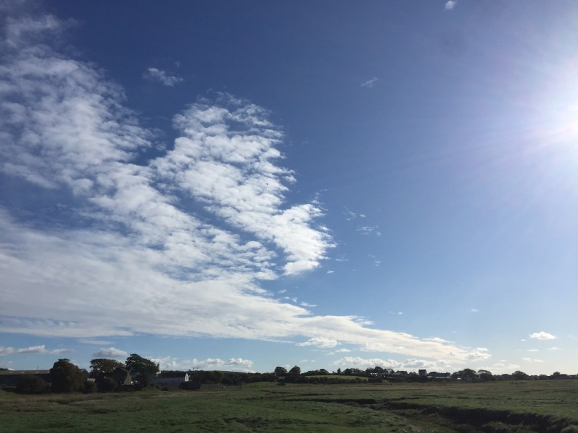 When I emerged a couple of hours later, the sun had poked its head out and it was pleasantly warm. The Dog cocked her head expectantly – she was wanting a walk. So I tidied and with The Dog leaping excitedly around my feet, we jumped into the car and headed to the coast.