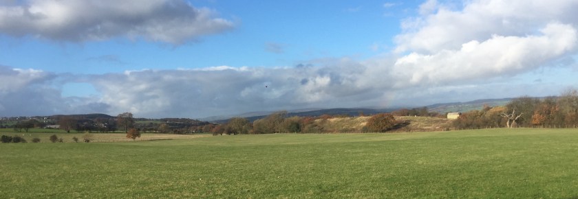 It was relatively mild, but the wind was strong. The sun shone between the big clouds, some threatening rain. We had already seen rainbows. We walked down a quiet lane, lined with houses, me indulging in my favourite hobby of having a good gawp into each property, wondering who lived there and their tastes in decoration. It’s amazing my neck isn’t at a permanent 90 degree angle. Most houses were quite modest, but suddenly in between a house and a bungalow, set back in its own vast acreage was house more suited on a country estate. It was monolithic in size and totally at odds with its surroundings. I walked many yards with my neck twisted and mouth agape, wondering how much furniture you would need to fill it and how you would call your family for dinner, as scattered as they would be in such vastness, when suddenly we were back to modest detached houses and gardens. It was such surprising interlude that I spent many minutes shaking my head in amazement.