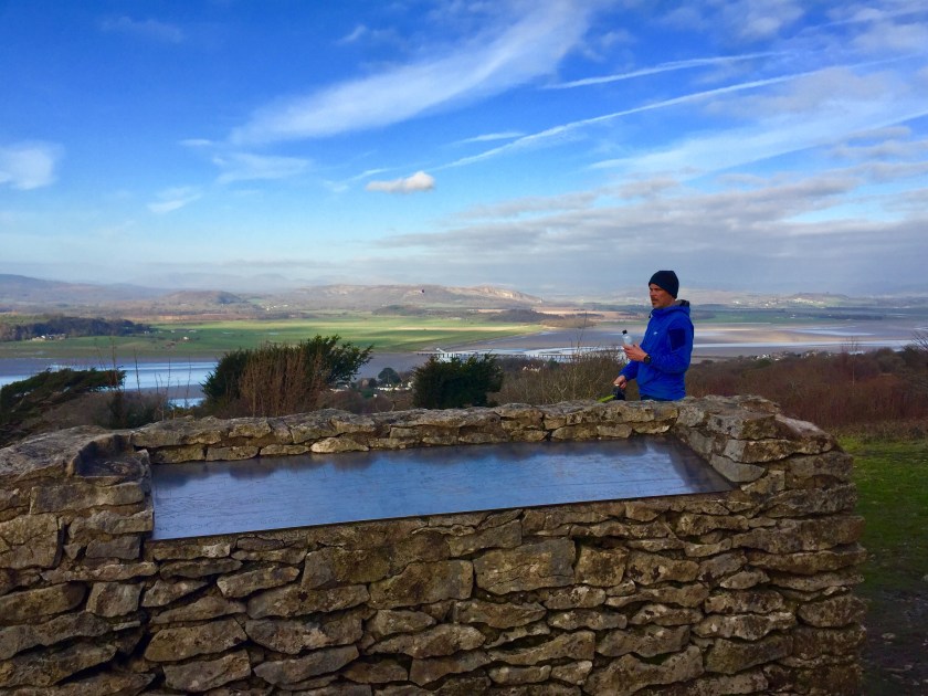 The Dog and I headed further up – a more leisurely slope towards the summit. The woods dropped away on one side, revealing the south side of the Knott with views across towards Silverdale, Morecambe, Heysham and on a good day, even Blackpool Tower. We came across the trig point, denoting the highest point of the Knott. We both touched it, because we could. There was no view here as the trees were too tall. Instead I read the little plaque on the side of the trig and was delighted to see that the Arnside Ramblers had taken it to their hearts and adopted it around 1997. It was a day of obscure and quirky signage. Usually benches and other public furniture is usually sponsored or donated by an organisation or group, but I had never seen one adopted before. It seemed that this particular trig had been left out from all the sponsoring and donating of its fellow trigs, so feeling sorry for it, it got adopted as if it was a cat or a dog, I thought it rather whimsical and so typical of the British. It also struck me that the Ramblers couldn’t remember exactly when they adopted it, citing sometime around 1997. If it was 1897, I could understand the records being a bit fuzzy, but 1997? It was only 21 years ago. I wanted to meet this group that went around adopting trigs but couldn’t remember when, but then I thought maybe the engraver had lost the little note with all the details on and embarrassed, decided to hedge his bets with “circa 1997”. Anyway I just loved the idea in every way and spent a few minutes deciding on what public item I could adopt.