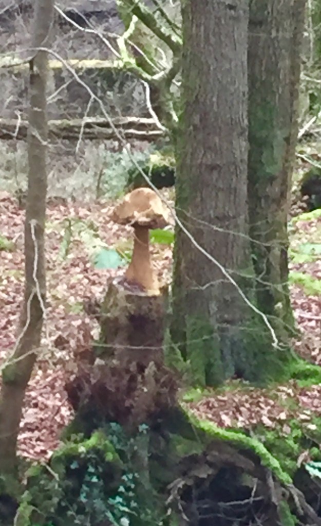 I spotted this wood carving in the woods by the Roeburn river – it seemed to be in a private area so I didn’t get close. Seems that a tree was felled and someone has carved the fungi on the top. I just love coming across these little unexpected pieces of art work, wondering why they have created. It made me smile.