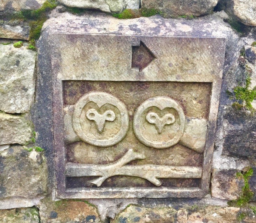 I was intrigued and looked for clues. I had a little pamphlet from the Forest Of Bowland about Wray that mentioned that visitors could “follow the carved stone way markers with images depicting the local landscape and wildlife. The images were designed by the local schoolchildren…….” but there was no further information of how many and whereabouts they were on the route I was following. I also spotted daffodils starting to sprout under some trees which I was surprised at – it’s was early January, far too early. But we had had a very mild Christmas so all the plants think it’s spring. I crossed the road determined to Google about the stones later.