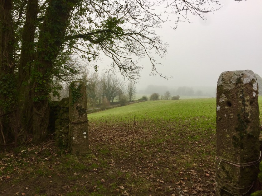 We got to the crossroads on the edge of the village and turned left, following the road into the surrounding countryside. It was damp and mizzly. I was starting to regret leaving my waterproof back home – it wasn’t drizzling when we left. So we marched on, following the route, but we hadn’t gone far when we were instructed to do a left. Two and a half miles isn’t long in our world, so studying our map, we decided to extend our walk and continued up the road on a long slow incline and make our own route up. The hill got the old heart pumping and we had a good pace. There seemed to be a myriad of footpaths and bridleways heading off on either side – it seemed a walker’s paradise. This area needed further investigation!