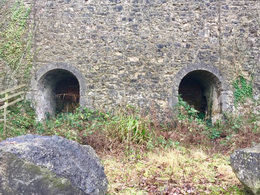 After our little diversion we dropped down through fields and footpaths, towards the main coastal road again. Any viewpoints or scenic vistas were not to be had today, the fog was in for the day. A path took us parallel with the main road, saving us walking along it and then dropped us on a tarmac back road, behind a unusually shaped office complex. We followed this, walking behind apartment blocks and a stone yard before coming up to the quarry, which mined asphalt. A tall stone wall had two kilns built into it, though disused.