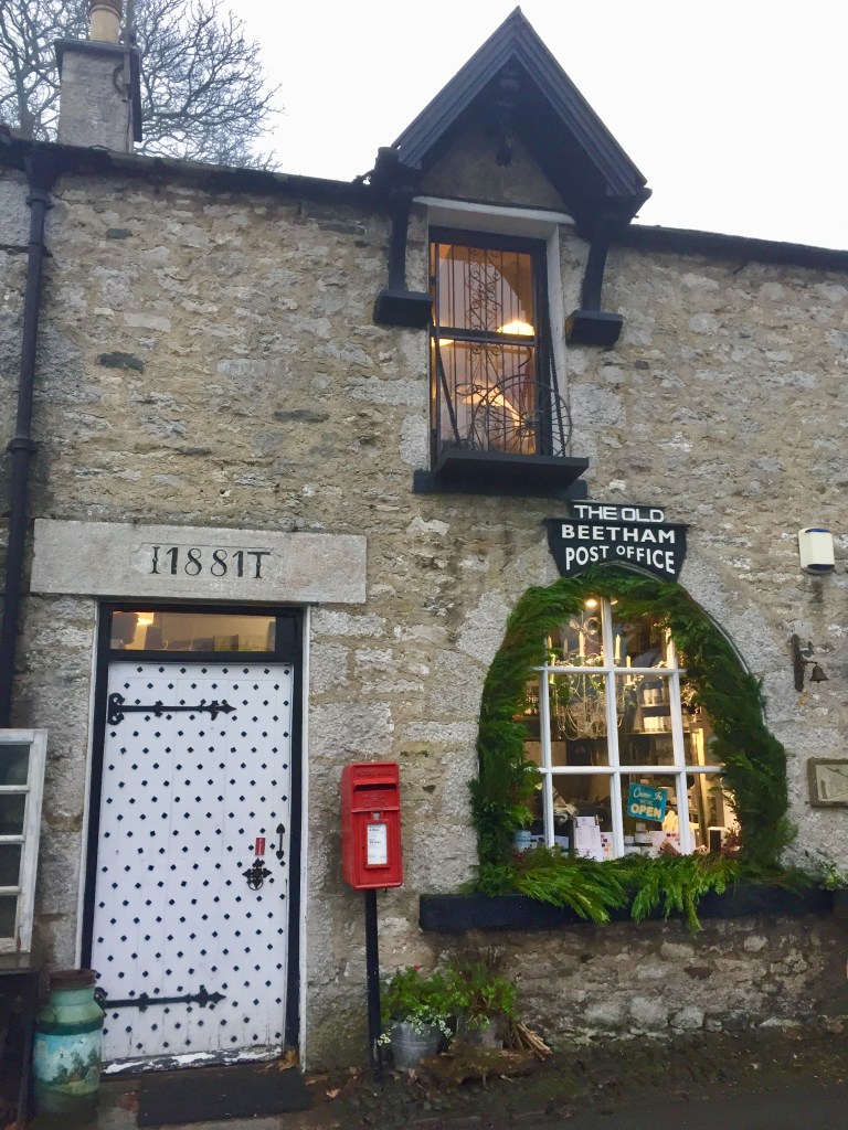 So through the fog and drizzle, we drove a few miles cross country until we came across the extremely enchanting and tiny village of Beetham, just off the A6. We pulled up outside a little shop with a tearoom sign above it, but couldn’t tell if it was open or not. We were on a tiny lane, so decided to check out where we could park. After a little recce of the surrounding village and another potential cafe, we voted to go back to the little shop cum tearoom (after checking it was open and it let dogs in).