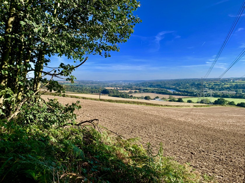 We walked at a good pace, through an arable landscape dotted with haystacks. The sky was blue, the fields were yellow. There were great views to be seen – gentle rolling countryside. Aeroplanes from nearby Newcastle airport flew over us. We still hadn’t escaped city life completely. We stopped for tea and a mouthful of nuts and fruit. Soon a large reservoir appeared in the distance and we wandered down. Here we stopped for quite a while as we didn’t have far to go now – it was just after midday and too early to check in. So we loitered here, enjoying the warm sun on our backs.