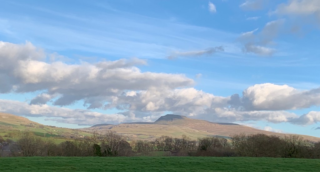 It was the first real hint of Spring, despite it being early February . Everything seemed bright and fresh. We parked by the bridge near the River Greta in Burton and walked along the single track road. I kept stopping to admire Ingleborough and the Dales. The Dog was not impressed with this stop/starting lark – even though I have to on her investigative sniffing. I didn’t care. I realised, after months of gloom, that I had forgotten to look and observe. (Hood up, head down watching for puddles).