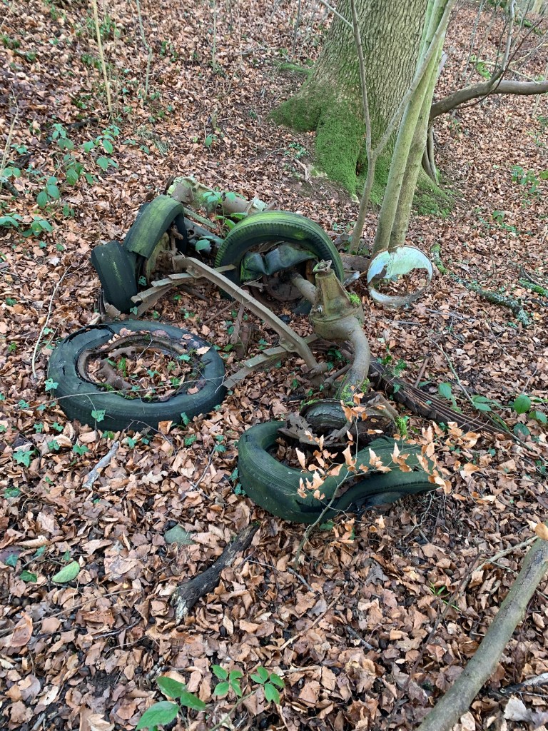 Then I despaired. Man had put his ugly hand in and some one had dumped a machine of some kind in. It had been there for years, rusted and crumpled, nature gradually eating it. But it was still an eyesore, in its bed of brown leaves and woodland debris.