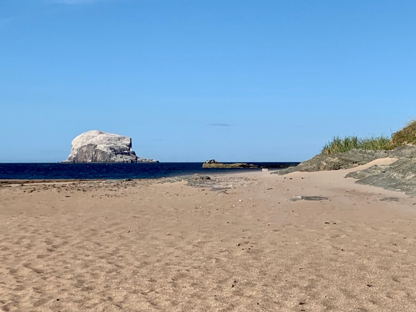 We saunter along (not worth having a go at these kids) as Bass Rock hoves into view and we can see the nesting birds swooping around. It’s quite a sight. It’s a lovely evening walk and we sit for a while, taking it all in and feeling very happy. We meet a young local couple who are off to camp on the beach further up for the night – literally just a whim after a week’s work and we are quite envious. What a lovely thing to do.