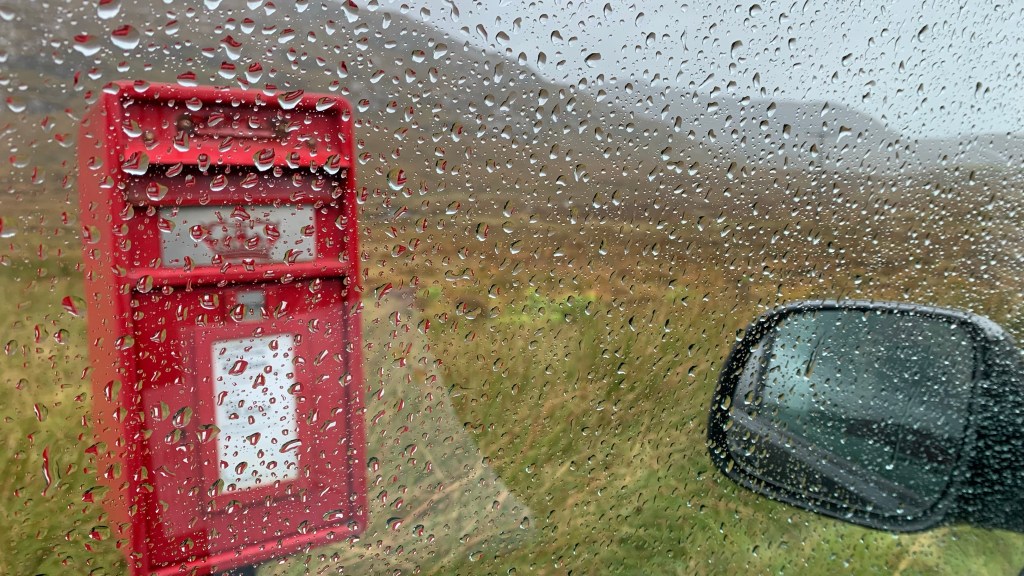 This road was full of surprises – we were half way to the west coast when in the middle of nowhere, there was a single low building (it was actually a converted shipping container) that was a pizza shack for takeaways. I looked for the bustling community nearby, but there was just a single house up the road. How did this business survive? There was obviously a demand for it, but just couldn’t see it. Perhaps they did Deliveroo. A little further on, we pulled up a by an isolated postbox opposite an equally isolated house to post our postcards that I had written on the boat. (Otherwise they’d never posted, come on tour with us and end up getting posted in my home village). Underneath, it informed me that there was a collection Monday to Friday at 4.15pm and one on Saturday at 12.15. It was just brilliant.