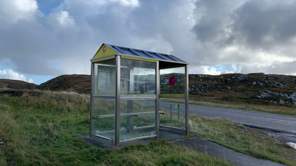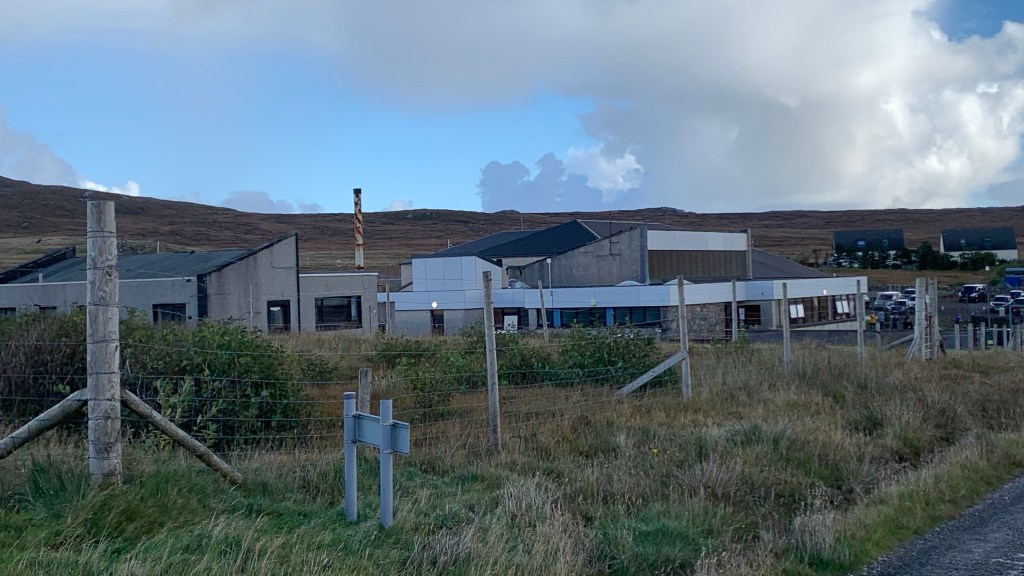 The seemingly heart of the area was a long line of bungalows, the nearest being quite new looking. They looked like they had been dropped from a height and left. No effort to landscape or blend them into the surroundings. There was no style to these buildings either – whoever had planned and designed hadn’t gone any further regarding aesthetics.. Who allowed this to happen? What did the local community think? Then we got to the village school, full of chattering children at playtime (again a surprising amount of young people considering. They obviously must come from far and wide). But these children were in the most appalling architectural building ever. It was a 1960’s concrete abomination of a sloping roofed rectangles stuck together. It was something you’d might just find in a run down inner city council estate, not on a Hebridean island. It was beyond awful and a rusting metal chimney just rubbed salt into the wound.
