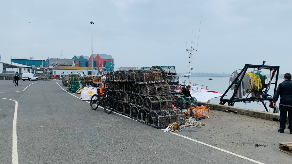 Amble hugs the coastline, a sizeable community with a docks, a harbour with a sea wall and a large industrial area. As we found our way to the docks, we passed street after street of long terraces of stone cottages, a reminder of Amble’s history of hardworking fishermen. Unsympathetic town planning had burdened Amble with ugly and cheap looking buildings that now looked shabby and even uglier and it looked like a town down on its luck, another seaside community struggling like so many others. But as we arrived by the docks, it was bustling with people wandering around. We joined the throngs and strolled past fishing boats unloading and sorting out their nets.. We walked past the The Fish Shack, a well known restaurant that was featured on The Hairy Bikers TV programme and was now heaving with people tucking into various dishes. Fancy new buildings were dotted around. We found a fishmonger’s and bought a bag of mussels and some crab before looking at their large containers full of water a few feet from the fish counter, one full of live lobsters and the other with tiny tiny infant lobsters. I felt quite sorry for them – their lives and ultimately their destiny. I don’t know how these people can go up to a tank full of crustaceans or fish to point and say “I’ll have that one” and find the marked creature lying on their plate 20 minutes later (though I am a pescatarian and happily orders fish from my local fishmonger’s, I just can’t pick them out individually knowing their fate and then spending my entire meal apologising and feeling guilty). We carried on investigating this area, a mixture of upmarket eating places and little wooden cabins selling upmarket gifts and street food, sitting easily beside the nitty gritty environment of a shrunken fishing industry. We found the restaurant we visited a few months ago, where we enjoyed a splendid fish platter which was reasonably expensive and that was full of people too. Tall trendy clapboarded apartment buildings lined the edge giving the docks a gentrified feel, smart cafes in their basements, but again, abutting little neglected tatty areas. We wandered to the town centre and main shopping centre, the street lined on both sides with shops which looked interesting. We walked down one side and up the other and again it was a town at odds with itself. It was busy. There were smart independent shops sitting alongside tattoo studios, betting shops and charity shops. Some shops were empty and boarded up, paint peeling and looking shabby, a bit of a blot while others looking like they hadn’t seen a paintbrush in the last twenty years. There seemed to be an inordinate amount of hairdressers, nail bars and outlets for the high maintenance woman, but with a background air of economic hardship. Apart from a small Tescos and a Co-op at each end of the street, every shop was an independent which was brilliant. Our friend had told us that Amble was up and coming and you could see that happening with the new buildings in the dock area and the trendy and tasteful shop fronts on the High Street. We hoped that the transformation continued, Amble certainly needed an upturn on its fortunes, but not to the detriment of the locals, their little self sufficient town turned into a tourist trap. It was just lovely to see it bustling and being supported. I love finding little places like this, ordinary, a little down at heel, but are actually thriving communities and bucking the trends. We happily did our own bit of supporting by visiting the local greengrocer and bakery and sauntered back, past the town square with fancy cobbles, herring bone brickwork and embellished stones. We watched a trawler upload and discovered a small beach by the harbour before finding the car again.