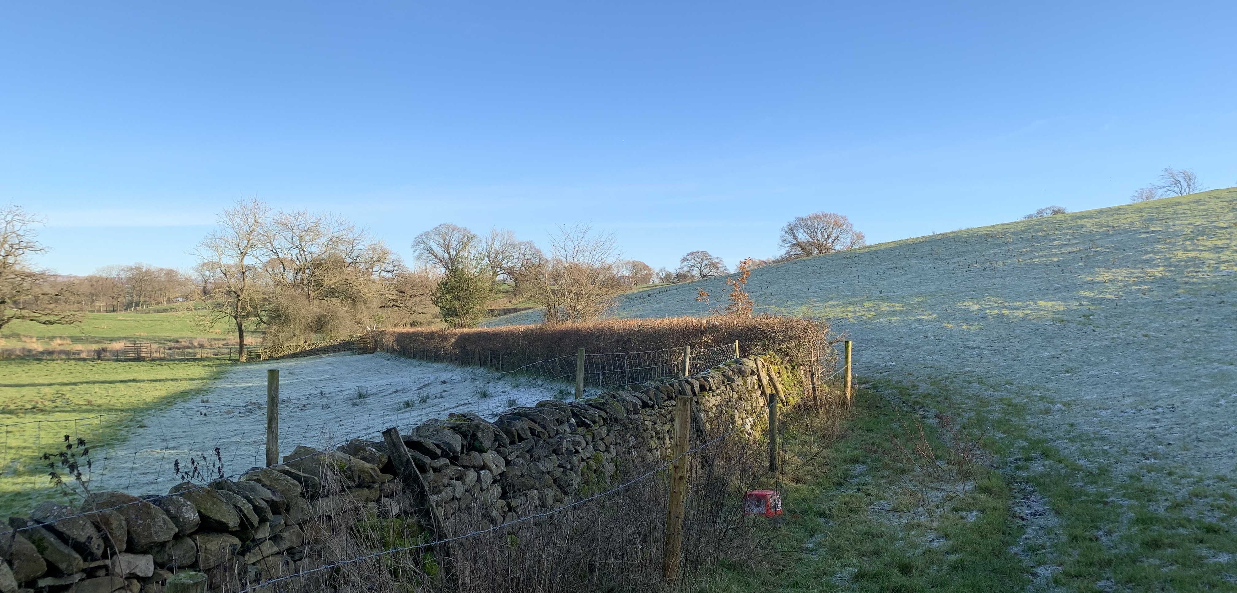 We continued along the footpath up towards another little community Stackhouses. We now were heading back to Settle. We walked along the little road together until we reached a fingerpost and a gated stile. Pushing through, we strolled across a wide field. I kept The Dog on lead. There were sheep in the field, albeit down the very far end and down a dip, out of sight, but farmers can still get cross. We soon came to another gate and on the other side the footpath was fenced off from the rest of the field, so The Dog got unleashed again. We were again high up overlooking the river and a large factory opposite. Think it’s some sort of aggregate place and it jarred against the scenery it stood in.