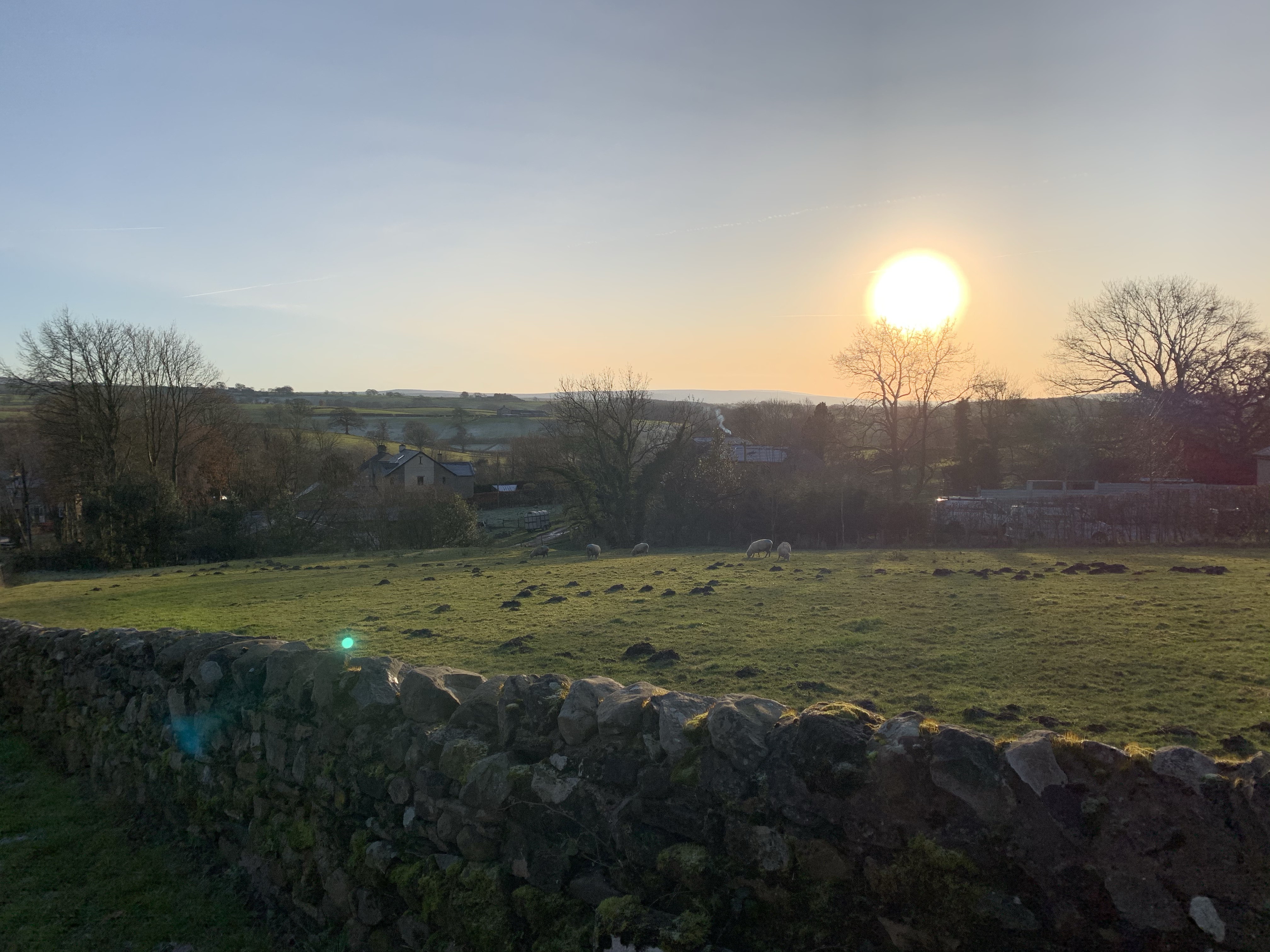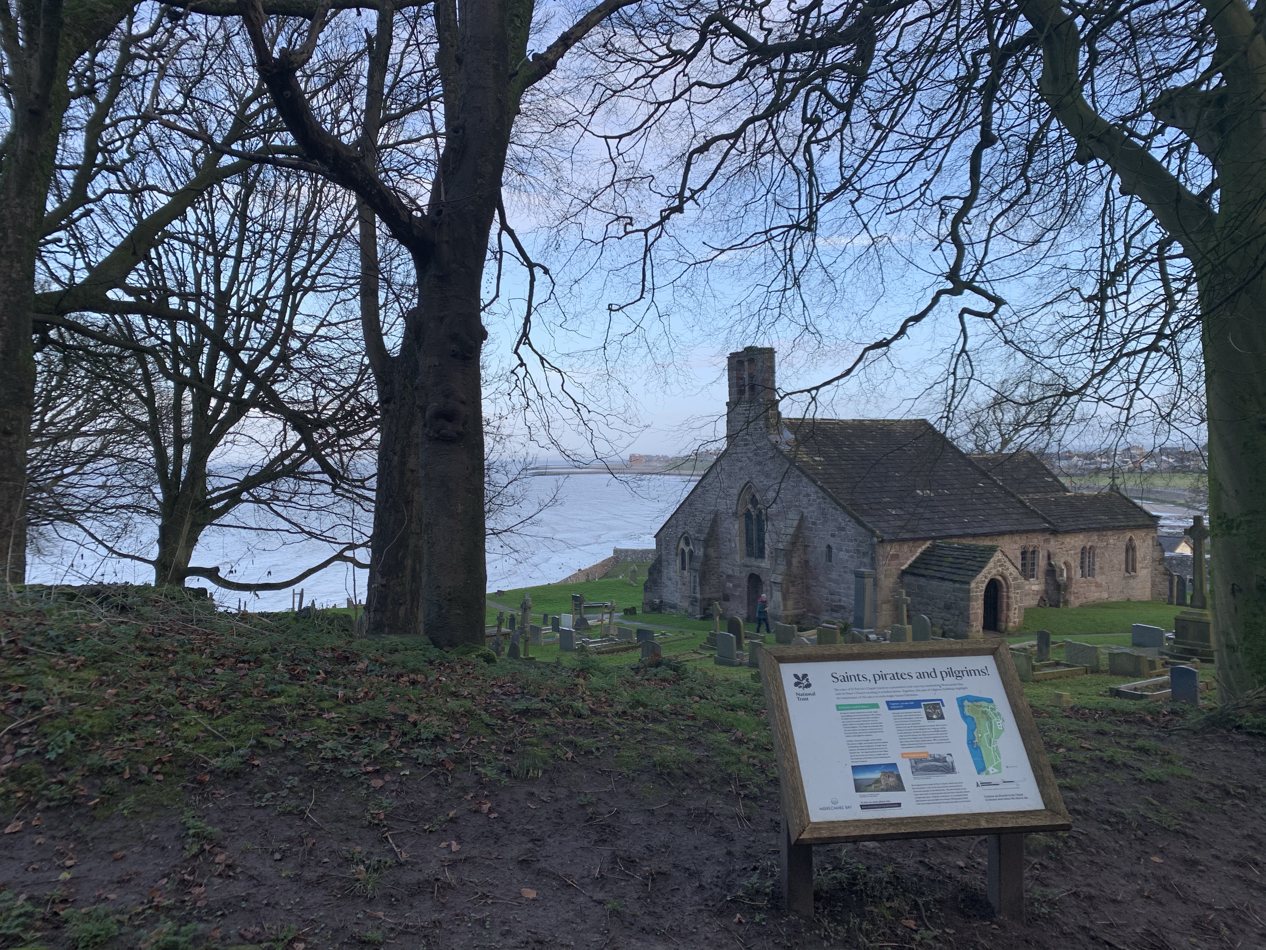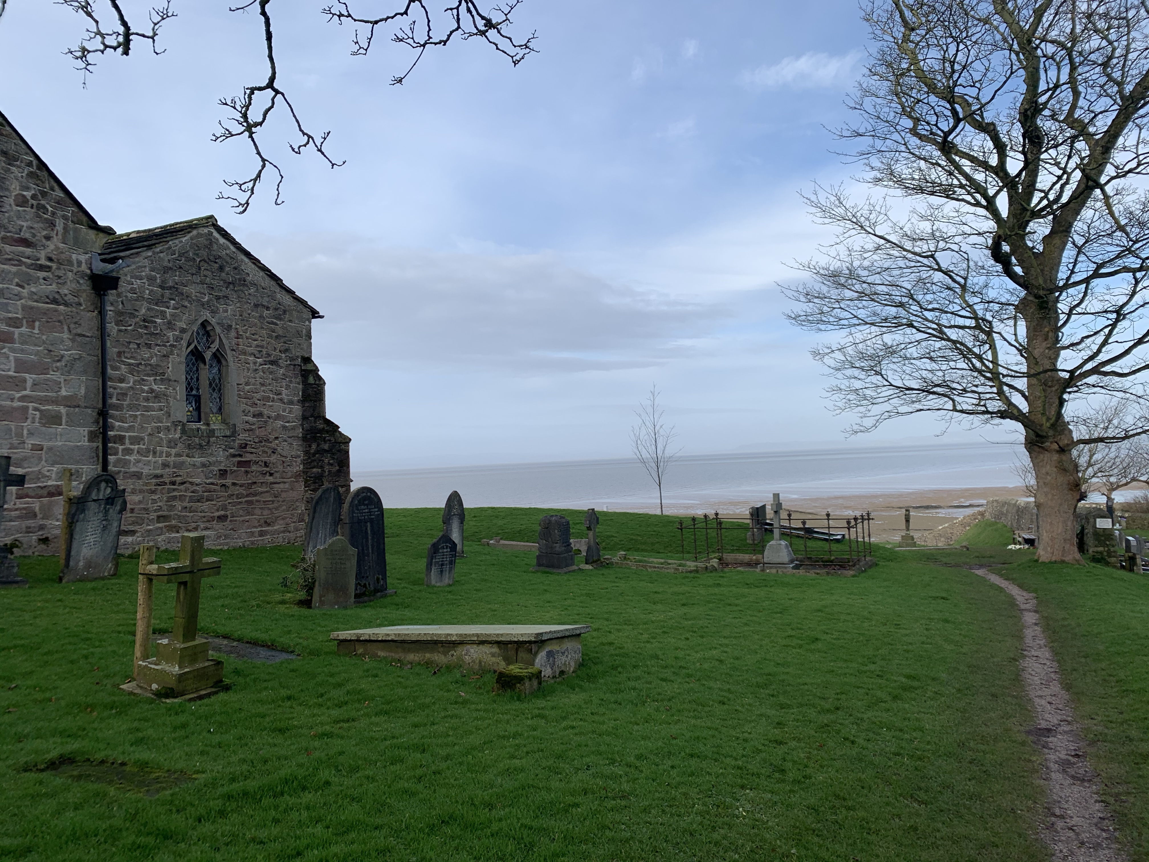 We headed back to the centre of the village and had a poke around. It was mainly a huddle of 17th cottages, with 19th century interruptions and the odd 1950’s bungalow squeezed in. The village was kind of growing in its own right before Britain launched the massive house building after the Second World War.We wandered around the church yard, full of gravestones old and new. It dropped down towards the sea and had a wonderful view of Morecambe Bay. It was a lovely spot. The church itself was dinky, with a slate roof and not particularly tall. I poked my head into the church as The Dog wasn’t allowed in. It was enchanting, with timber beams, lanterns and stained windows. It was so cosy and welcoming, a lovely little place of worship.