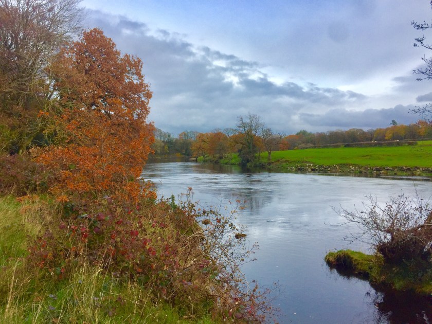 By this time, the sun had won its battle with the clouds and lit the dale up with a beautiful golden light. The fells shone with greens and browns of dying bracken, the trees with a mixture of greens, yellows and gold – though they were still pretty much in full green leaf for this time of year. The path steadily rose, giving us fantastic views up and down. High up on the fell and in the side valleys, the crumbling buildings of Crackpot, the iron mining industry of the 18th and 19th centuries, stood resolutely by the slag heaps and scarring of that era. It added to the atmosphere of an isolated and untouched dale, where time has stood still.