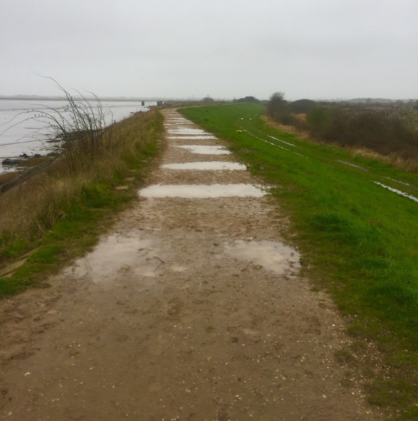 The raised path giving us views across the mud flats (tide was out) and the reeds and marshes on the other side.