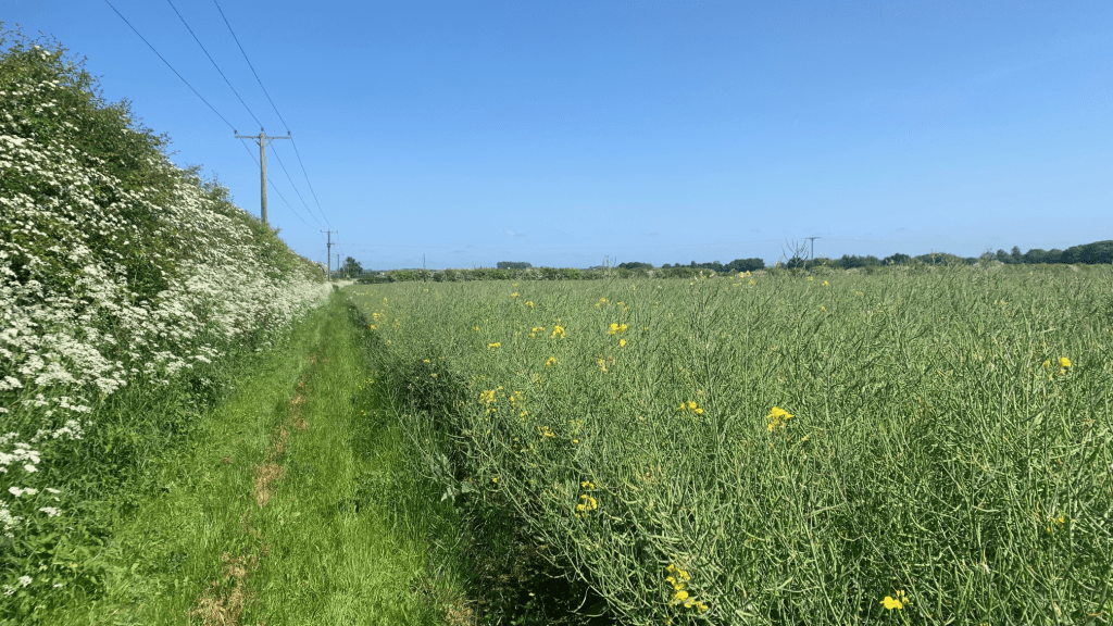 We were burped out into sunshine as we followed the mass of vehicles piling off the ferry – the satnav took us and most of our fellow travellers through the congested streets of Belfast before connecting us to the motorway in a southerly direction. Our ultimate destination was Kinsale – for the start of the Wild Atlantic Coast – but it was too far down on the southern coast to do in one afternoon. So we had a plan to head about halfway to a place called Mullingar and hoped they had some campsites. We had a pleasant drive along motorways and A roads, through pretty countryside, the Mourne Mountains on our left and other notable hills dotted along our route. We crossed into the Republic of Ireland without noticing until the next road signs were written in Gaelic as well as English and we were suddenly dealing with kilometres rather than miles. Weird. From the UK into Europe without dropping below 70mph.