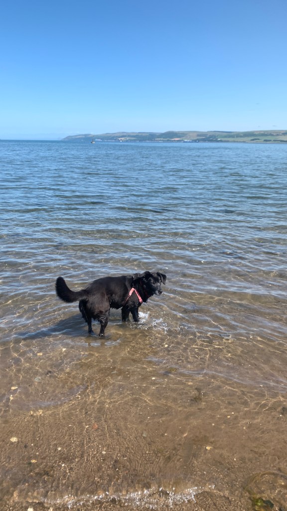 We settled down for tea and some wine before having a little wander around the site and along the road outside. By the shoreline, there were a heap of paddleboards with fairy lights and the young girls unpacking them, said they were doing a paddleboarding sound bath on the water around 10pm. That sounded interesting. We’ve done sound baths before, but in a village hall – a paddleboard would be a different experience! The Pup wet her feet in the water as we wandered back and made friends with a lovely family from Dublin who had a static caravan on site, who made a big fuss of The Pup and we made a big fuss of their ancient Golden Labrador. We waddled back to the Van and settled in for the night. We’ve slept well even with a immovable 25kg Labrador hogging most of the duvet.